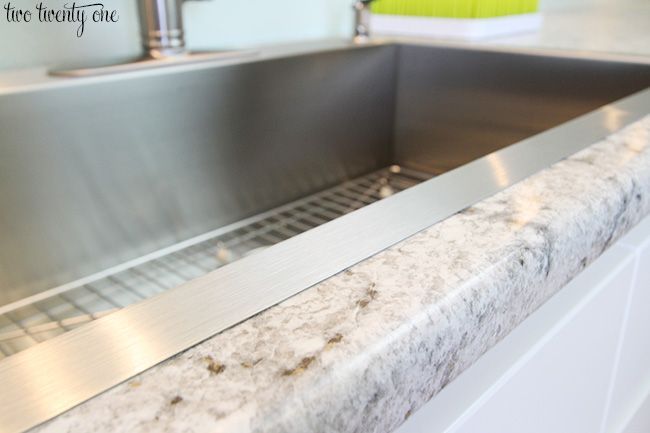 We carry the following colors in 8-, 10-, and 12-foot sections in standard countertop depth of 25” with an integrated 4” backsplash and a no-drip edge. With our in-stock countertops, it takes about 4 weeks to produce, so you’ll have new counters in no time!